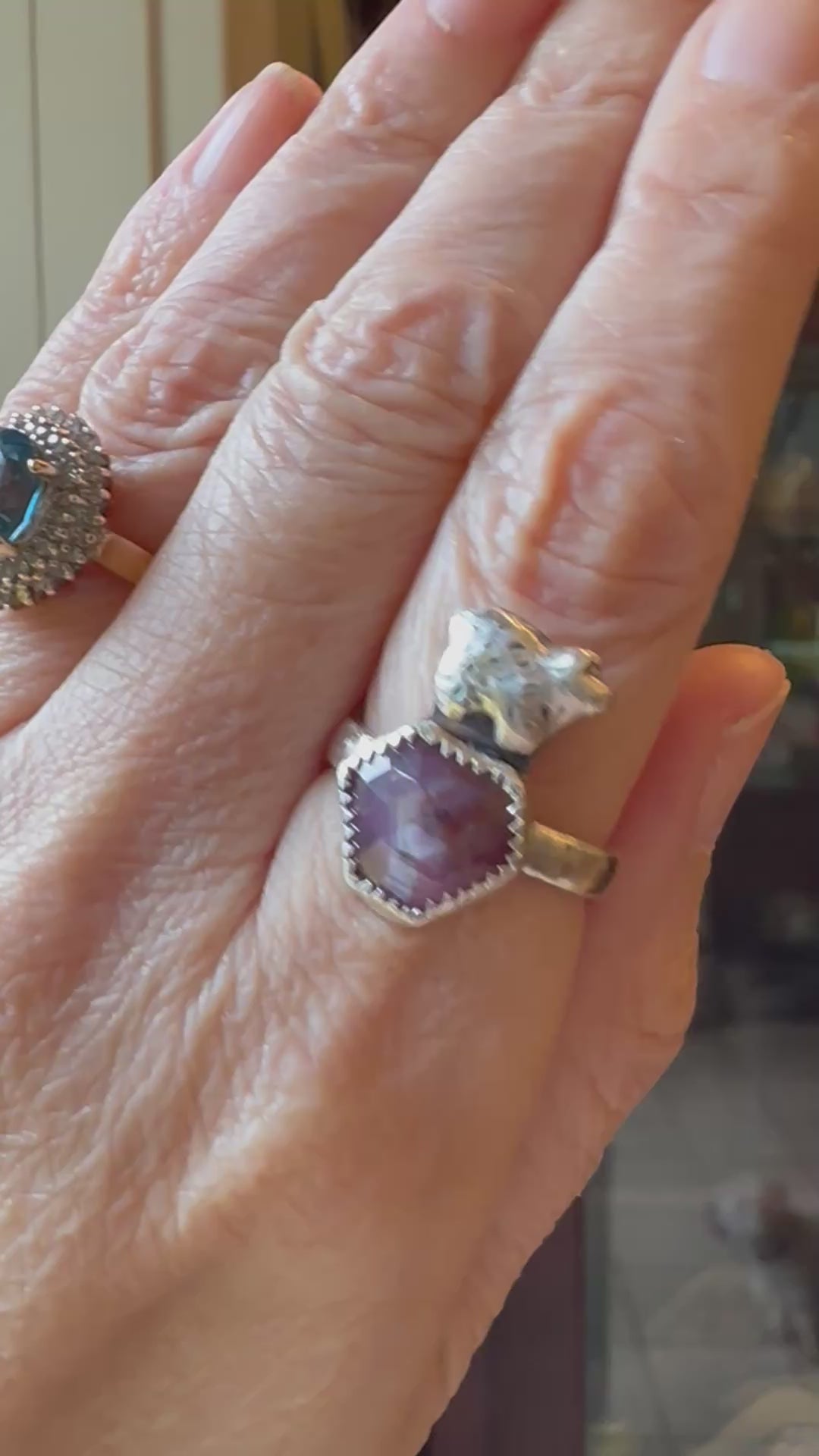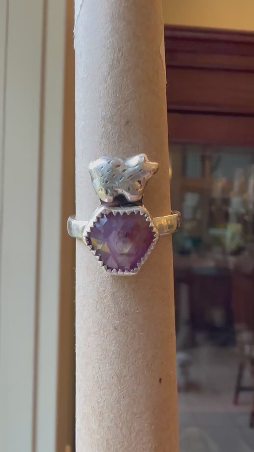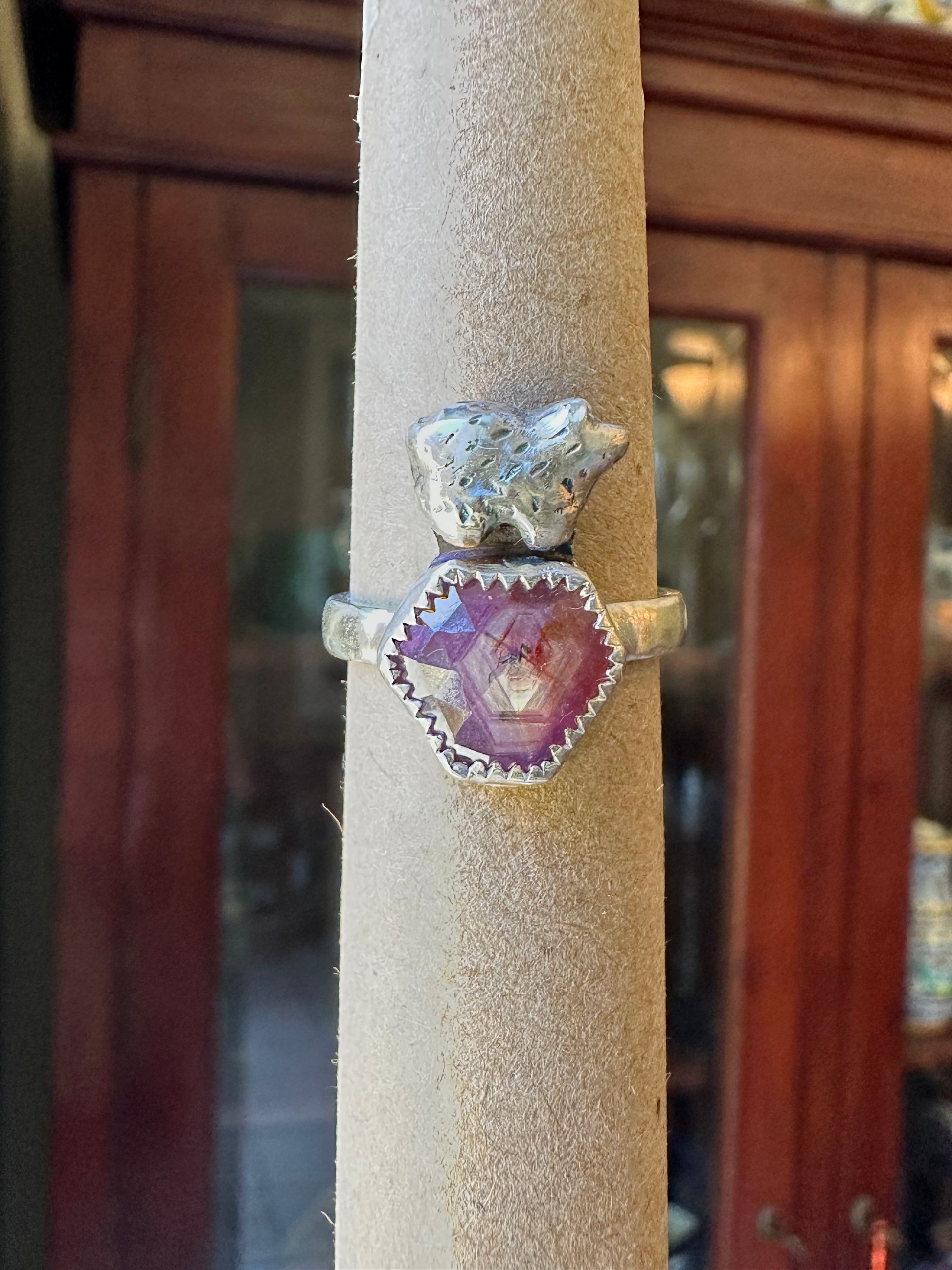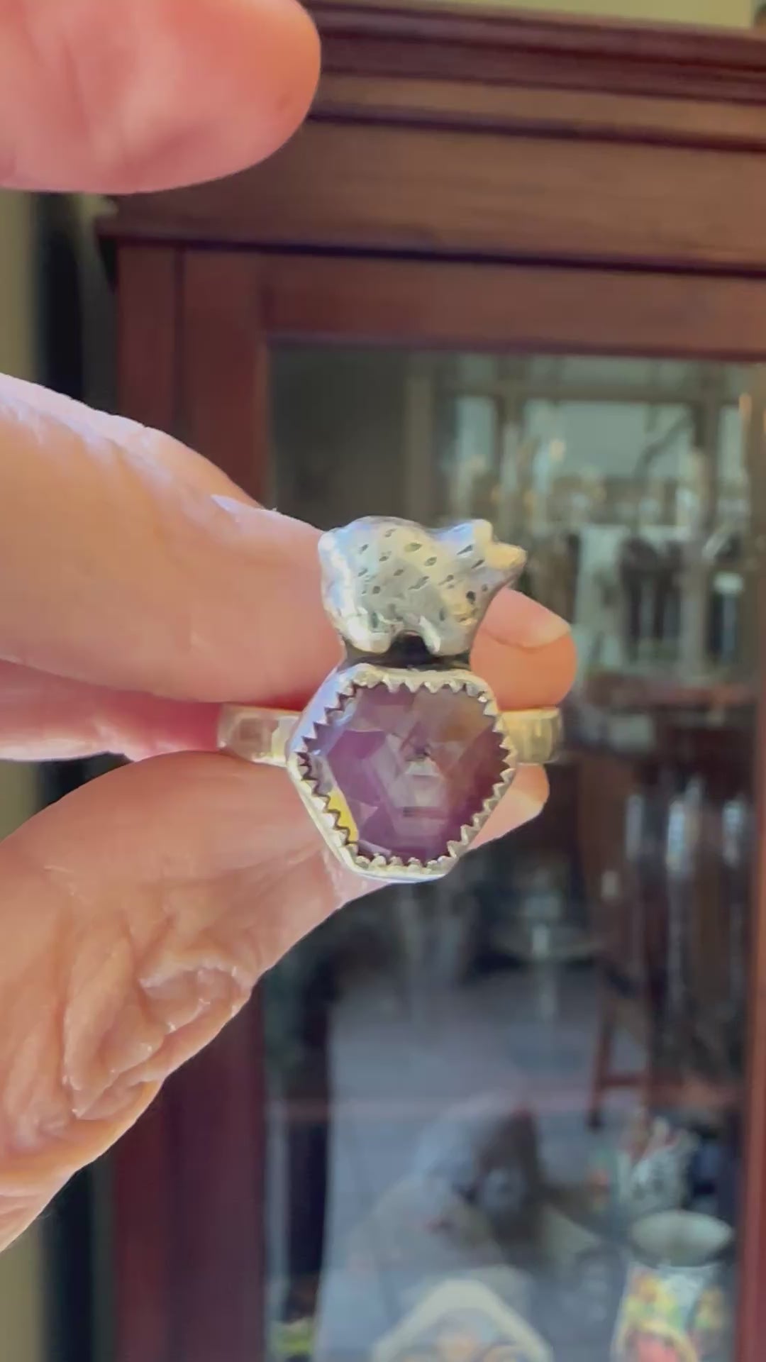 Bear and Ruby Fine Silver Ring