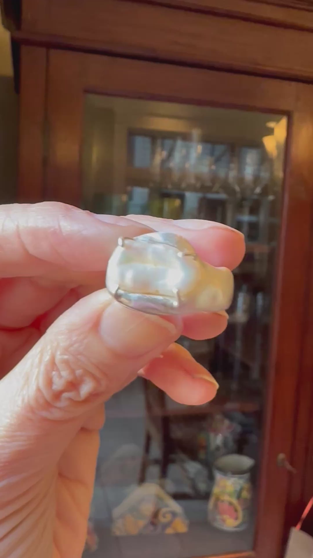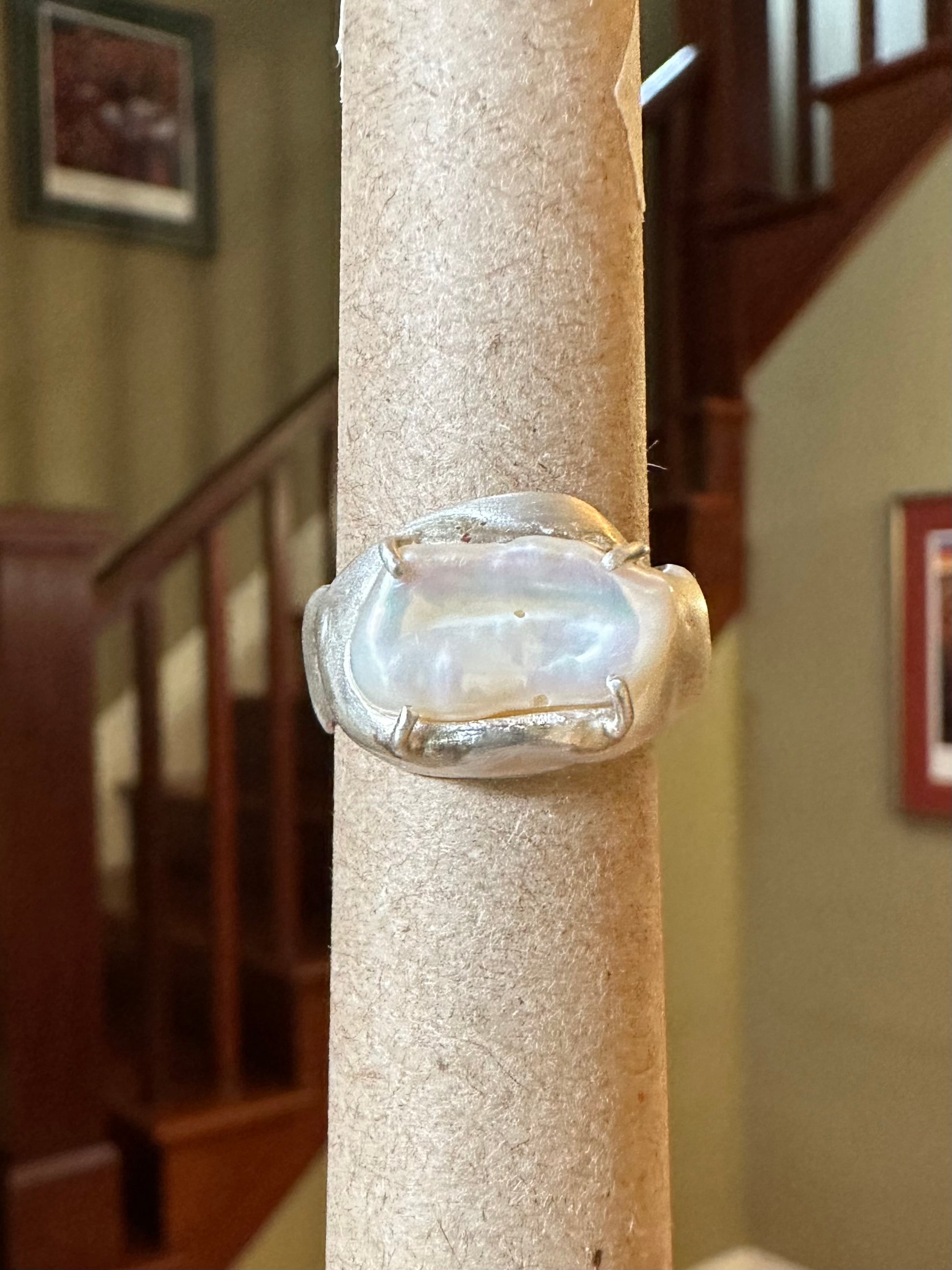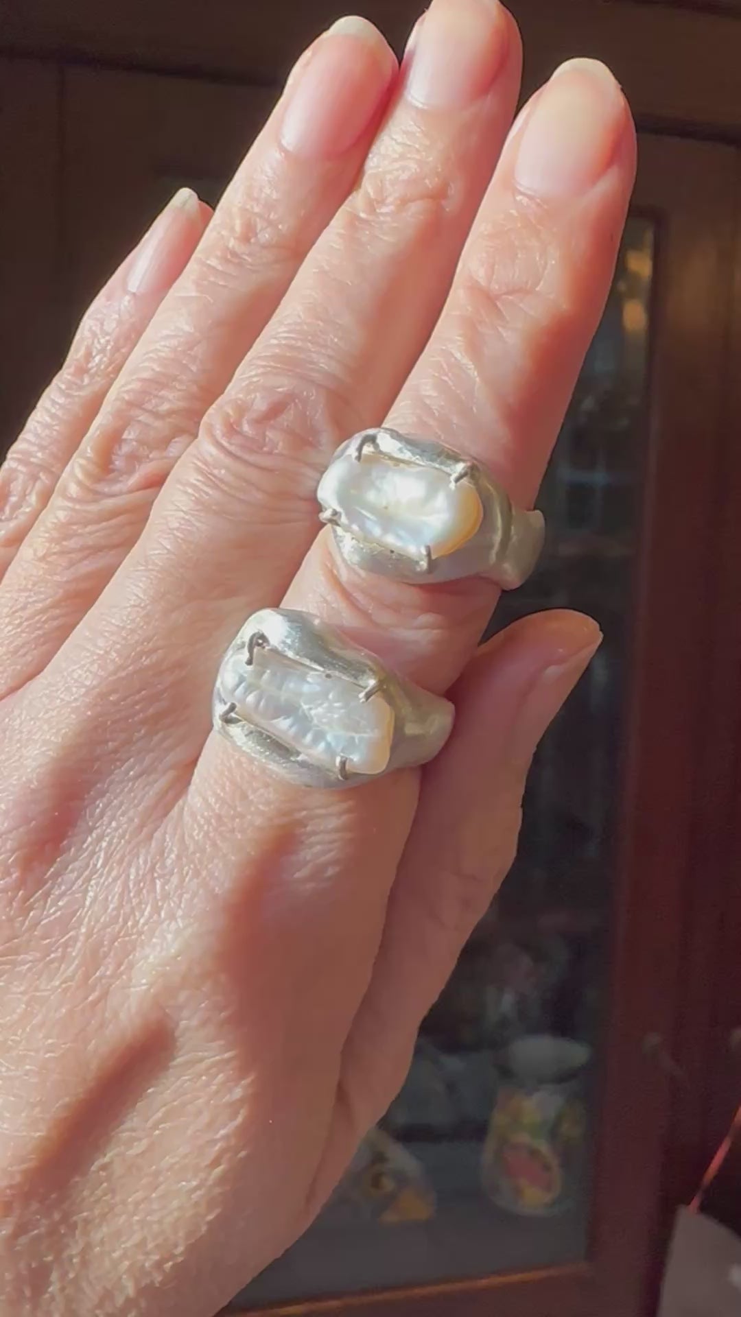 Fine Silver Cloud with Baroque Pearl Ring (top ring)