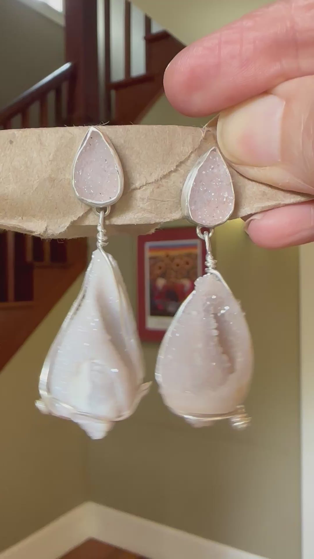 Fossilized Drussy Shells with a Drussy gem set in fine silver.