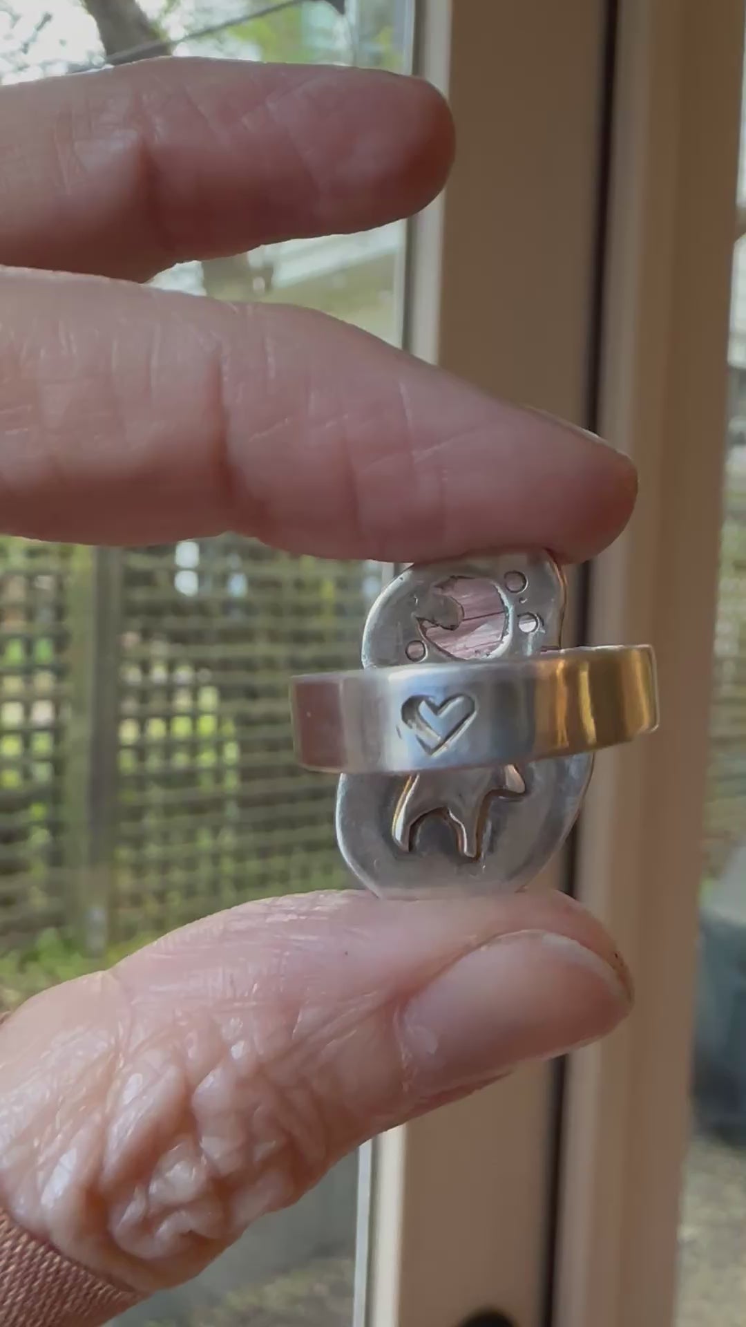 Turquoise (6.4 ct) and pink tourmalime (1.66 ct) ring set in 14k gold bezel and fine silver 💙🩷 With a little surprise coyote on the back♥️