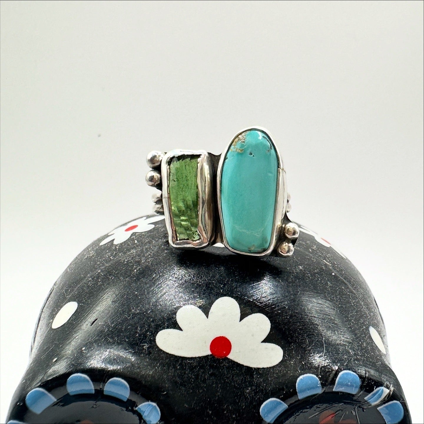 Turquoise Mountain and Green Tourmaline set in silver